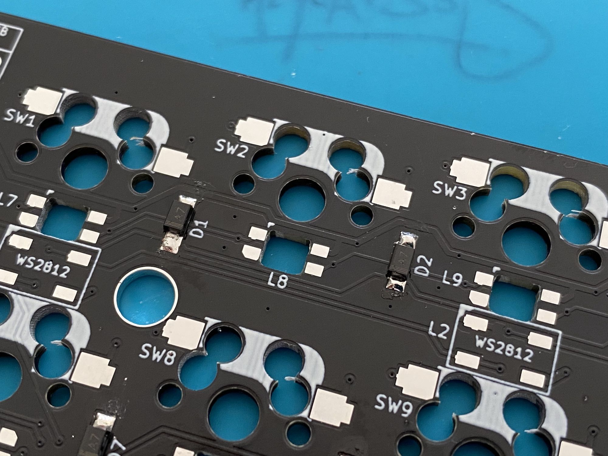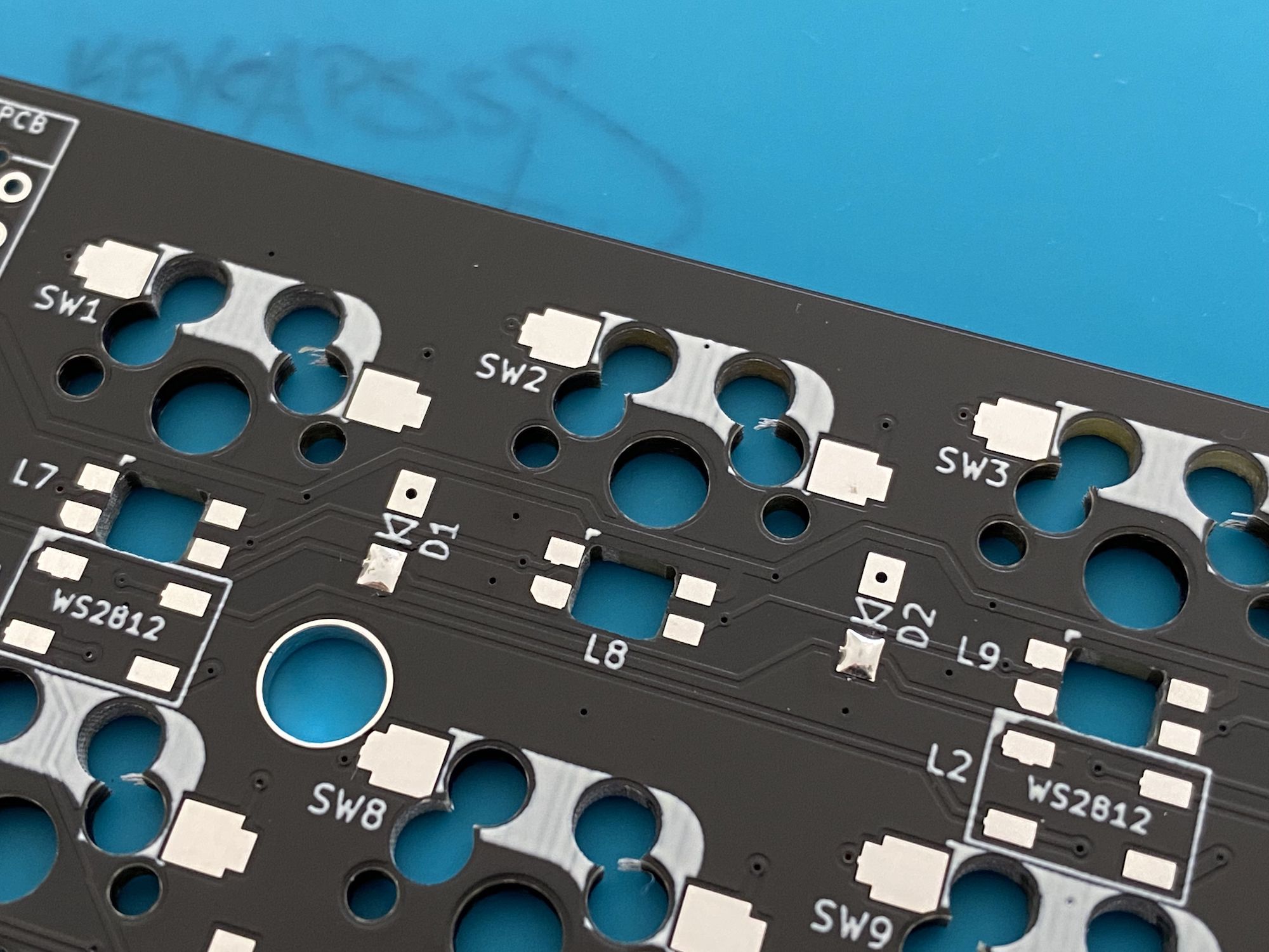 It is necessary to solder all WS2812 LED's (underglow) in the previous step, to use the LED's for the per switch RGB (all LED's are connected in series).
