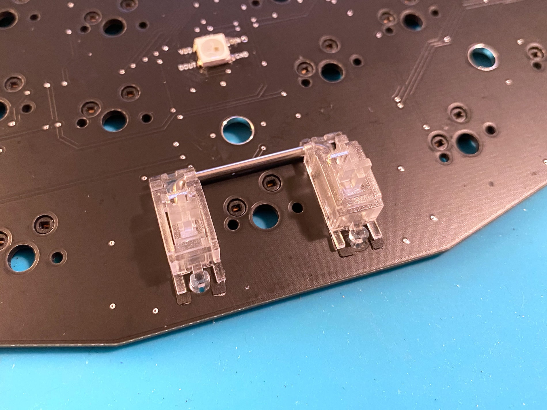Check that all pins from the switches are straight and not bent. This is important that all pins move into the switch sockets in the next step.