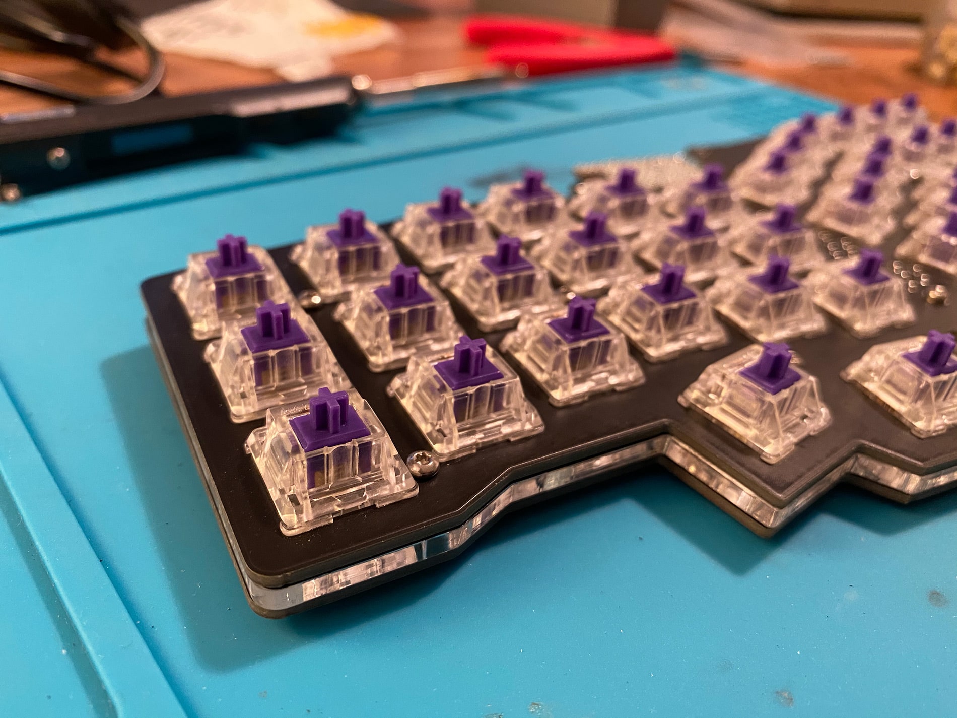 Insert all switches of your choice (MX and clones) into the top plate.